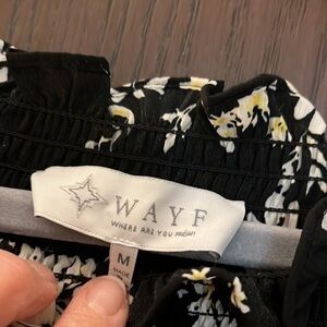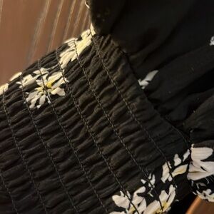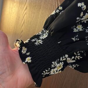 WAYF black with yellow and white flower patterned blouse bodysuit. Size Medium. Elastic at the top so it can also be worn off the shoulder. 3/4 sleeves with elastic band. Looks new!