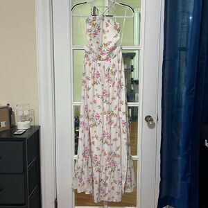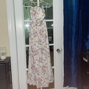WAYF elegant summer Beach maxi long dress white pin stripe floral size medium
