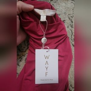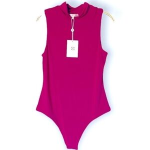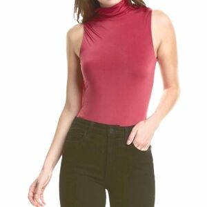 WAYF mock turtleneck "cheeky" cutsleeveless bodysuit. Fuchsia pink. Size S NWT