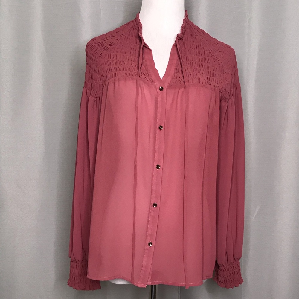 Deep rise colored button down blouse. * semi sheer