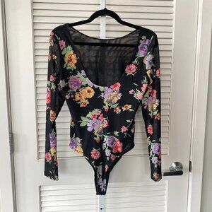 WAYF x Anthropologie Scoop Back Long Sleeve Bodysuit, Black Floral, Size M