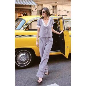 WAYF x Styled by COCO! Nina Gingham Seersucker Straight Leg Pants in Black