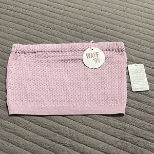 Show a hint of skin in this tube top designed in a cable knit for swoon-worthy throwback style.