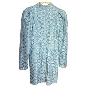 WAYF Elan Lace Puff Sleeve Mini Blue Dress Size Small