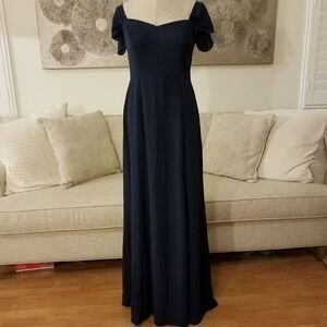 Dipped at the neckline and draped at the arms, beautiful d'colletage is the focus of this charming maxi dress. Goring at the skirt creates elegant, sweeping movement.