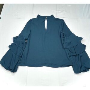WAYF Ruffled Sleeve Chocker Blouse Teal Green