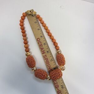 WA/YM Natural Stone Covered Beaded Orange Coral Colored Statement Necklace