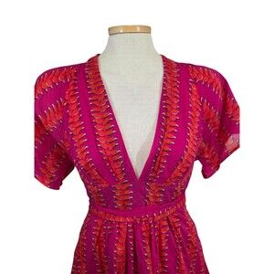 WAYWARD FANCIES Eshakti Dress Womans *Medium Pink Plunge Linear Cotton READ