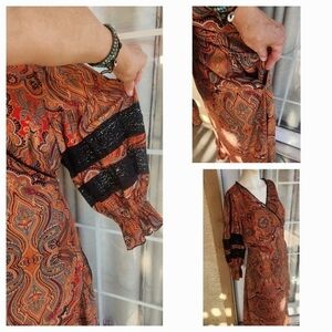 WAYWARD FANCIES eShakti Ruffle Paisley Print Crepe Lace Trim Wrap Dress