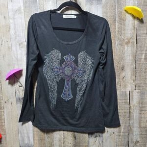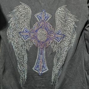 WB Atlas Vintage Y2K Black Cross Angel Wing Embellished Tee
