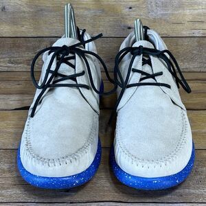 WB Moccasin Size Mens 6 Womens7 Taupe Royal Blue Hemera Skirt 100% Leather Suede