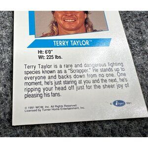 This collection of 1991 WCW trading cards showcases wrestler Terry Taylor in action-packed scenes. The cards, filled with dynamic imagery, capture the essence of wrestling from this era, making them a valuable addition to any wrestling memorabilia collection.