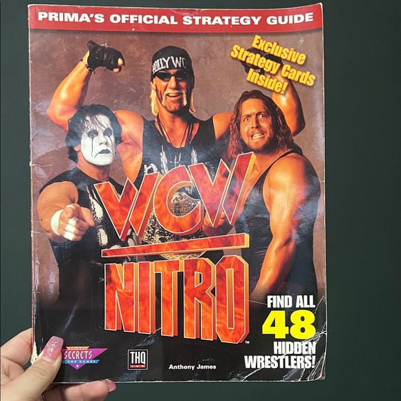 Official WCW Nitro strategy guide with exclusive cards inside. Features vibrant red and orange cover design.