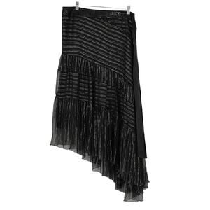 WD NY 100% Silk Black Silver Gold Stripe Tiered Skirt Sz 8 Gypsy Y2K Whimsigoth