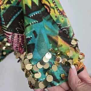 WD NY Linen Blend Midi Skirt Sz 4 Multicolor Gold Sequin Hem Lined Boho Gypsy
