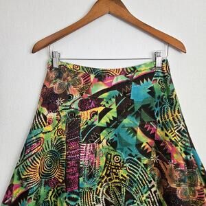 WD NY Boho Linen Blend Skirt Sz 4 Multicolor Gold Sequin Hem Lined Art To Wear