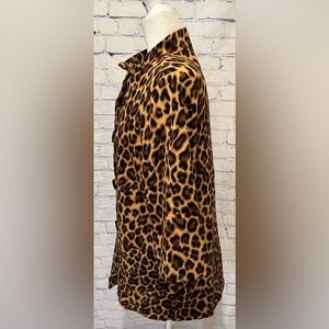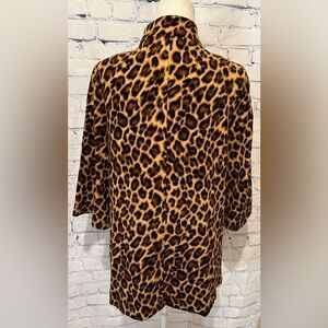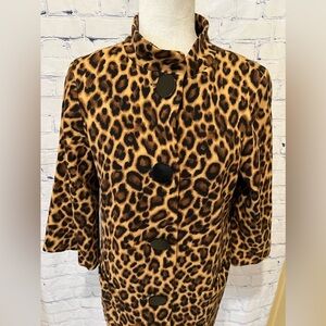 Beautiful long blazer/jacket. Cheetah print. Two front pockets. 4 Button closure. 3/4 sleeve length. Excellent condition. No signs of wear. Size 8, 20" pit to pit and 29" long. Smoke free home.