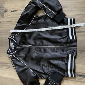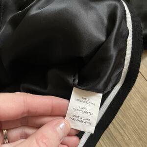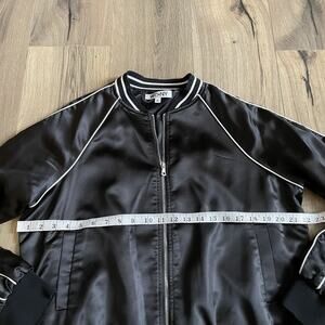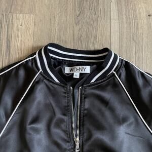 WD NY Satin Bomber Style Jacket Size Large Black White Trim Y2K