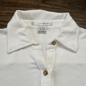 WD NY Women's Button Up White Shirt in Large w/Rolled-up, tab sleeve option