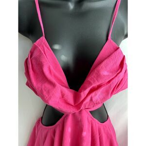 WDIRARA NWT Pink V Neck Cut Out Mini Dress Tie Layered Ruffle Hem Barbiecore M
