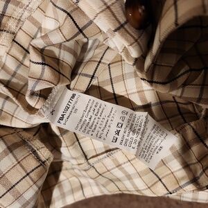 New with tags, WDIRARA women's plaid tartan high-rise crop pants in size medium. Tan, black, and white plaid pattern.