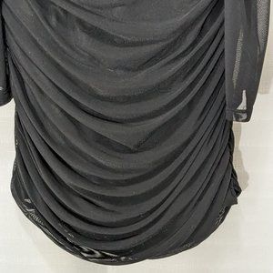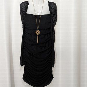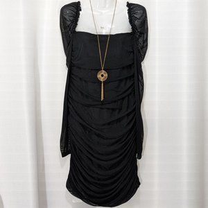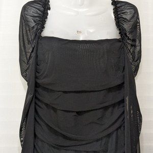 WDIRARA Womens Square Neck Mesh Puff Long Sleeve Bodycon Mini Dress Pure Black Size XL NWT.