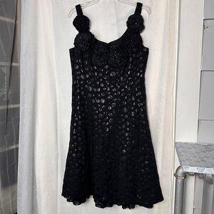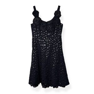 WD.NY A-Line Mini Dress Sz 10 Black Shimmer Polka Dot Floral Embellished Neckline Y2K