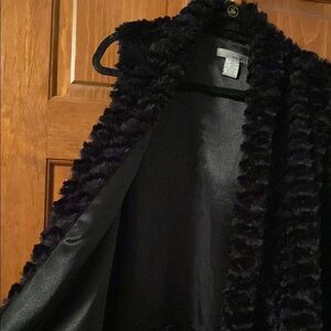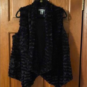 WD.NY Black Faux Fur Open Front Vest Size Large