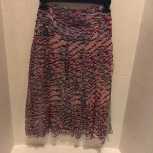 WD.NY Futter Lined Silk Skirt Size 14 Preowned Pleated Waist Side Zip Feminine Airy Fairycore Flowing Animal Print Safari Festival Renfaire Preowned