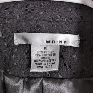 WD.NY, Blazer, Jacket, Career, Office, Work, Business, Classic, Lace, Crochet, Embellished, Jeweled, Bejeweled, Women, Workwear, Business Casual, Woman, Women's, Size 10, Cotton, Polyester, Semi-Formal, Eyelet, Lace Overlay, 2000s, Classy, Lacey, Lacy, Pretty, Girly, Dainty, Long Sleeve, Collar, Collared, Saks Off Fifth