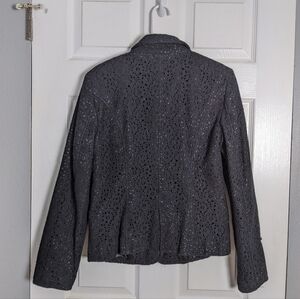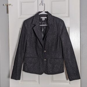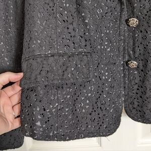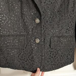 WD.NY Long Sleeve Black Eyelet Crochet Lace Blazer with Jeweled Buttons Size 10