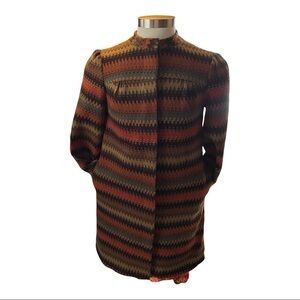 WD-NY Muted Multicolored Earth Tones Chevron Button-Front Long Jacket Cardigan M