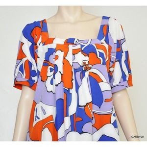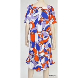 WD.NY Printed Abstract Floral Elbow Sleeve Shift Dress Top Multi 12 Nwt