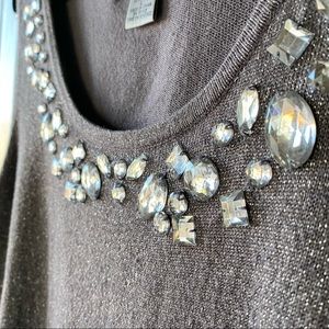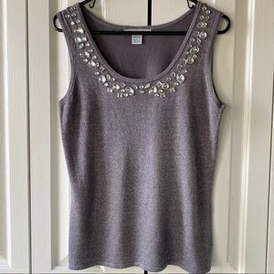 Beautiful silver metallic colored tank top with eye catching rhinestone collar from WD.NY.