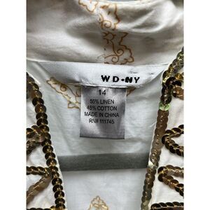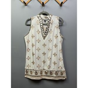 WDNY Top Womens size 14 beaded sequin linen blend tunic Boho Festival Artsy