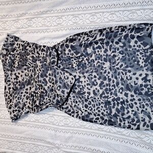 WD.NY Vintage Leopard Print Dress. Never worn size 8. Short cap sleeve. Draped neckline. Patent black belt. Front pockets. Skirt is a slim style hits mid knee length. The dress is fully lined. Georgette poly fabric outer and liner. Chest 20" waist 16" hips 21" length 38"