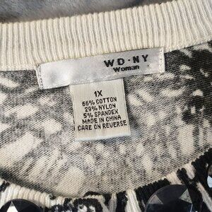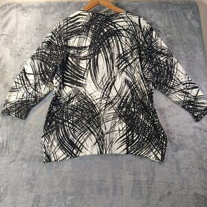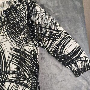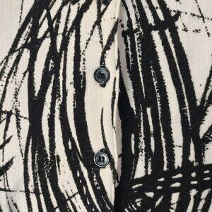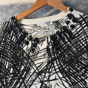 WD.NY Woman Abstract Top 1X Button Details & Embellishments Black White Moody