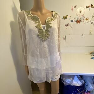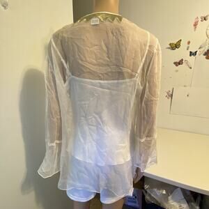 WD-NY Women 10 100% Silk White Mesh Blouse Too Y2K Romantic Fairy Angelcore