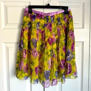 WD.NY Womens Pleated Silk Skirt Sz 6 Floral Lined Y2K Easter Flowy Sheer Overlay Coquette
