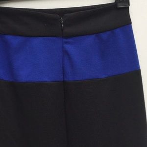 Color block form fitting skirt measures 3” waist to hem Size2 Royal blue band 3 1/2” flattering around waist Skirt wears beautifully Pencil style