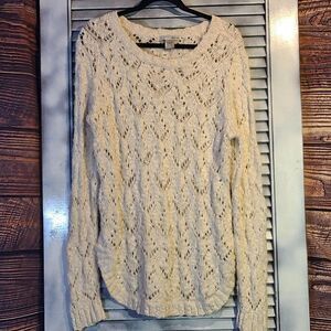 Adorable, fuzzy and lightweight cream sweater from WD NY. Size large. Split hem. 90% cotton 8% acrylic 2% nylon. Hand wash. Made in China. Excellent condition. Nonsmoking home.