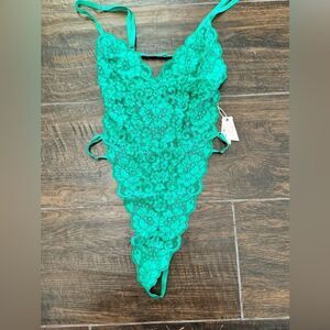 WE ARE HAH CHASE HAHROUND LACE TEDDY IN EMERALD NWT SZ L