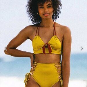 WE ARE HAH SWIM Lace-Up Hi Kini Bottoms Yellow- Size M