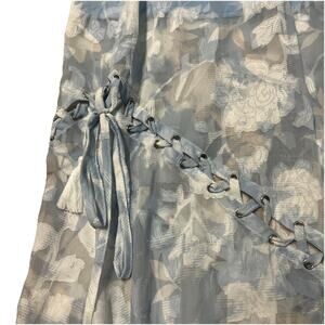 WE ARE KINDRED Womens 4 Blue White Floral Maxi Gown Front Cut Out Romantic Cottagecore Coquette Coastal Soft Girl Whimsygoth Light Romanticore Lightweight