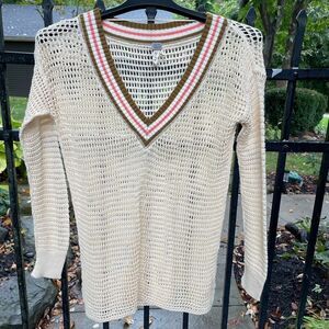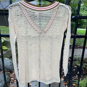 WE THE FREE Crochet Open Knit deep V-Neck Sweater in cream