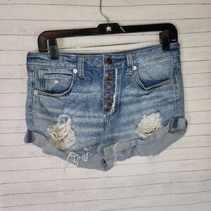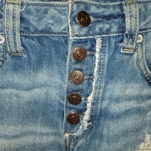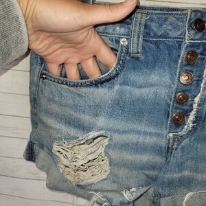WE THE FREE DISTRESSED BUTTON FRONT DENIM CUTOFF SHORTS, SZ 26