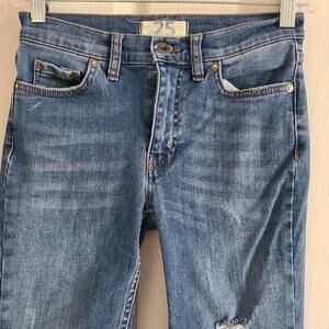 WE THE FREE Great Heights Mid Rise Distressed Fringe Frayed Hem Skinny Jeans 25