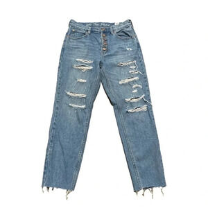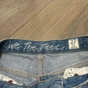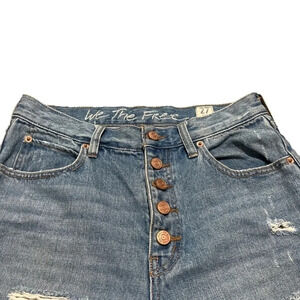 WE THE FREE HIGH WAISTED DISTRESSED BUTTON-FLY JEANS. SIZE 27