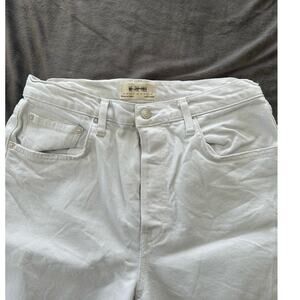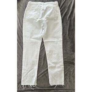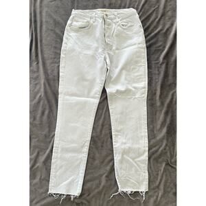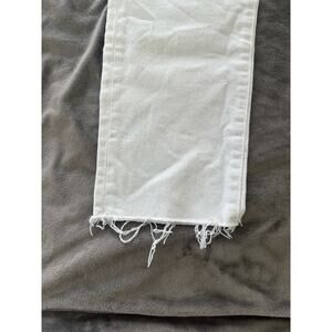 WE THE FREE Jeans Womens Distressed Button Fly White Denim High Rise Straight Leg Casual, Bohemian, Stretch, Raw Hem