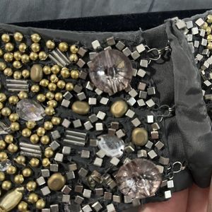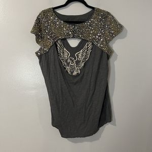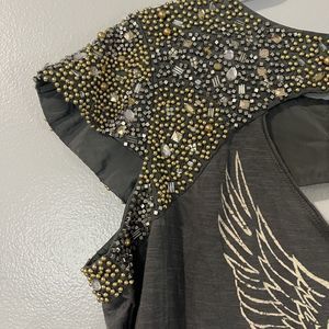 WE THE FREE Jeweled Shirt Women’s Large Gray Studded Eagle Grunge Casual Biker